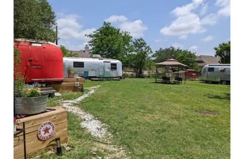 Vintage Glamping close to Austin! Se encuentra en Travis County. Vintage Glamping close to Austin! ofrece alojamiento, con Servicios de invitado, Niño amigable, Internet, Entre otras comodidades. Estas características Cabina Servicios de invitado, Niño amigable, Internet, Para que su estadía sea cómoda.