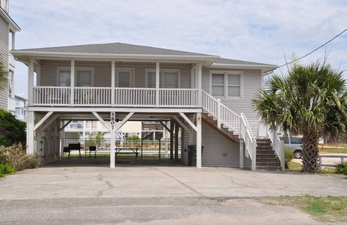 Casa de playa recientemente reformada con piscina privada. 3 dormitorios y 2 baños. Gran porche delantero con vista al mar y mecedoras. Gran terraza trasera con vistas a su piscina privada. Vallado en patio trasero. Esta casa es para perros. Hay un montón de espacio al aire libre, cubierta de la piscina, terrazas cubiertas, porches y estacionamiento. La cocina se acaba de actualizar con nuevos gabinetes, encimeras de granito y electrodomésticos de acero inoxidable. El dormitorio principal tiene una cama king size y los otros dos dormitorios tienen dos camas matrimoniales en cada habitación. El acceso a la playa está directamente en frente de esta casa y solo unos pasos de la arena. Esta sección de Cherry Grove tiene las playas más anchas y es increíblemente hermosa en todo el punto con las ensenadas, islas y marismas. Hay un lanzamiento de barco a sólo un cuarto de milla de distancia. La casa está muy bien y recién amueblada, la cocina está completamente equipada y equipada, y la piscina se construyó para la temporada 2019. Esta es una casa de playa con carácter y encanto que completará sus perfectas vacaciones familiares en la playa. Internet WIFI de alta velocidad, televisores de pantalla plana en cada habitación, ducha de playa al aire libre para lavarse antes de pasar el rato en la piscina. No olvides traer a tu perro también. Te encantará esta casa!
