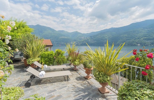 En el momento en que camines bajo las enredaderas en flor de la entrada privada a la terraza y abras la puerta al espacioso vestíbulo y sala de estar, te enamorarás de Vista Lario. El apartamento cuenta con una fabulosa sala de estar con pisos de mármol, dos sofás, uno de ellos tipo cama tamaño queen, una mesa de juegos/comedor y un televisor inteligente para transmitir tus programas favoritos. La cocina totalmente renovada está totalmente equipada con todo lo necesario para preparar fabulosas comidas para disfrutar en la mesa del comedor de la terraza o para entretener a los invitados en la mesa agrícola de la cocina. Vista Lario tiene dos habitaciones dobles, incluida la amplia habitación principal con bañera con vista al lago y televisión inteligente. Hay tres baños, uno de los cuales tiene ducha doble y lavabo doble. Entre los dos dormitorios hay una acogedora sala de estar con estanterías y chimenea a la luz de las velas. Sin embargo, su lugar favorito en la casa seguramente será la terraza con su vista de 180 grados del agua y las montañas. Completa con un área de comedor al aire libre con toldo retráctil, tumbonas para relajarse bajo el sol y un mirador cubierto de glicinas donde los huéspedes pueden disfrutar de un aperitivo en compañía de otros, la terraza es lo que hace que Vista Lario sea tan fácil de amar.