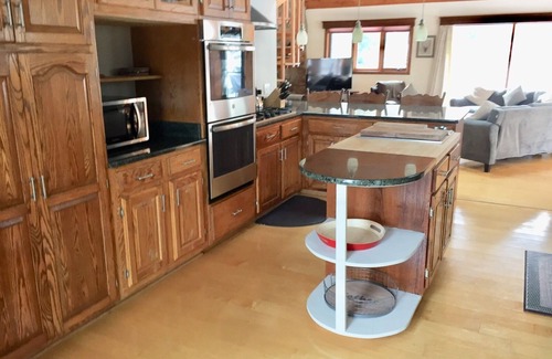 El plan de piso abierto incluye un gran comedor, gran sala, loft y una gran cocina. Este espacio permite que grandes grupos se congreguen con acceso de visualización a las tres áreas. La escalera de caracol hasta el desván es ideal para pasar el rato en los futones y disfrutar de la vista a la montaña a través de los dos tragaluces. Disfruta de una estufa de leña nueva en la gran sala instalada en octubre de 2017. Birch Valley tiene vistas a la montaña desde casi todas las habitaciones de la casa. Hay muchos lugares hermosos para sentarse afuera en el balcón delantero o en la terraza trasera de 30 '.
