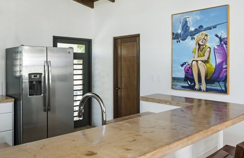 La casa está diseñada para combinar con éxito el lujo moderno con el sabor de la isla paradisíaca que está visitando en Vieques. Intencionalmente he dejado de lado un televisor, aunque hay una conexión inalámbrica a internet confiable. Aire acondicionado y ventiladores están incluidos en los dos dormitorios y ventanas en el área de estar abierta en múltiples lados de la casa para los vientos alisios maravillosos. La casa es extremadamente cómoda y conveniente, a la vez que te da una idea de la gran escapada que estás buscando. El diseño es juvenil, con clase y brillante.