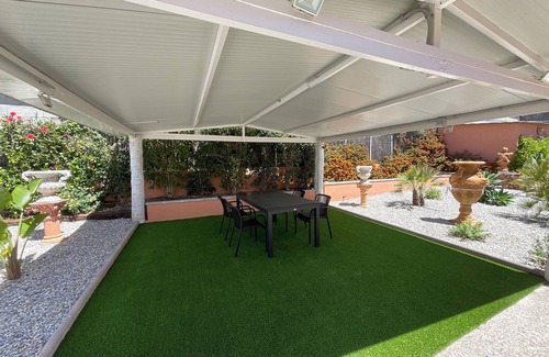 Vivienda mediterránea en Casa Terracota es una vivienda de dos plantas dentro de una parcela de 1000 m2 donde se ubican dos viviendas una en planta alta con parte de la planta baja y otra solo en planta baja. La propiedad tiene una piscina de gran tamaño con espacios de solarium compartidos con la otra vivienda. La vivienda se puede alquilar de forma conjunta con la vivienda en planta baja pudiendo hospedar a 12 personas en total 6+6.