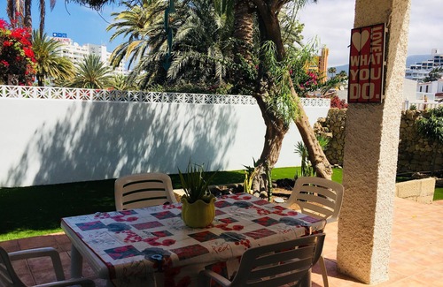 Es una Vivienda Vacacional tipo bungalow con Registro Turístico VV-38-4-0091523 situada en una zona residencial tranquila de Playa de las Américas, a tres minutos caminando de la playa y del paseo marítimo. Dispone de dos habitaciones, un baño, cocina, salón-comedor, terraza con jardín subtropical, ideal para tomar el sol en un ambiente privado.