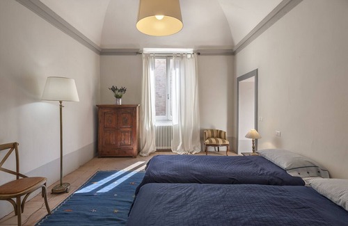 La casa, que se desarrolla en todo el primer piso de un palacio noble en el centro del antiguo pueblo fortificado de Mondavio. Fue restaurado total y cuidadosamente a fines de 2013, respetando también las normas antisísmicas más recientes. Los techos altos y las amplias habitaciones le permiten experimentar la casa con un estilo del pasado.