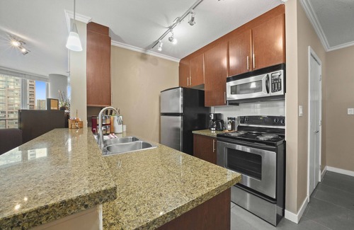 A este apartamento para no fumadores tan agradable no le faltan opciones para pasarlo en grande, como, por ejemplo, bicicletas y equipo para deportes acuáticos en las instalaciones. El alojamiento dispone de aparcamiento en las instalaciones, así que olvídate de tu vehículo y da un paseo hasta Estadio Rogers y Jardín Clásico Chino del Dr. Sun Yat-Sen. Si te apetece ampliar tus horizontes y conocer lugares cercanos, estarás a 12min a pie de la Estación de tren Vancouver Waterfront y a 12min de la Estación central de tren de Vancouver Pacific, de modo que coger el tren te resultará muy sencillo.