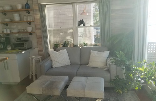 Rústica cabaña frente al mar con hermosas puestas de sol! Esta casa está a 20 minutos de Providence y Newport y a solo 1 hora de Boston. 2 dormitorios en el 2do piso. Ambas habitaciones con camas dobles. 2 libros para dormir en el sótano de salida en el lado del agua. Carril bici y playa de la ciudad están cerca. Descansa afuera cerca de la fogata o siéntate en la terraza para ver la puesta de sol. No se recomienda nadar desde el malecón. La playa local está a poca distancia en coche. Las playas de Newport sin duda valen la pena.