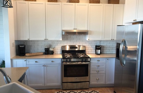 Hay 2 dormitorios en el piso principal, cada uno con una cama king. Hay 3 dormitorios en el nivel superior; El dormitorio principal cuenta con una cama king y una habitación con litera adicional para 5 niños, el segundo dormitorio en la planta superior cuenta con una cama king y una cama plegable en el armario. El tercer dormitorio tiene 2 camas queen. También hay un pack n play, silla alta para un niño pequeño. La gran sala tiene un HDTV de 56 "con Netflix, internet de alta velocidad gratis y la cocina está totalmente equipada con todo lo que pueda necesitar. Cocina y comedor recientemente remodelados, con una mesa para 10 personas. Recién pintado en todas partes, nueva iluminación actualizada y paredes decorativas shiplap.