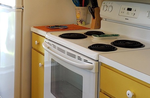 Este alojamiento de 2 dormitorios y 2 baños cuenta con una sala de estar, un comedor, una zona para barbacoas y chimenea. El cuarto de baño incluye un secador de pelo, toallas y papel higiénico. La cocina está equipada con horno, placa de cocina y frigorífico, además de cafetera y tetera, máquina de hielo y microondas. Y como hay una lavandería de monedas en los alrededores, no necesitarás llevarte mucho equipaje.