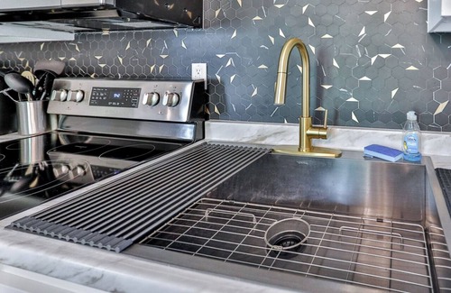 Enjoy the convenience of a full kitchen, designated workspace, and cozy living space designed for rest and productivity.