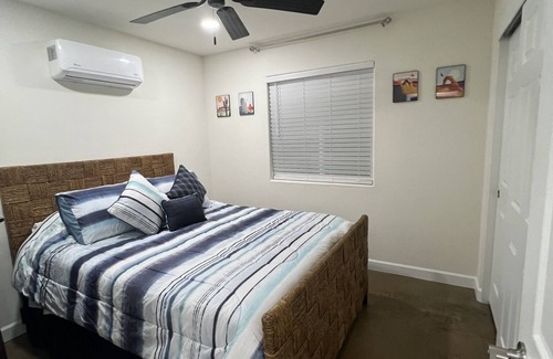 Al instalarte en este alojamiento de 2 dormitorios y 1 baño, encontrarás una sala de estar y aire acondicionado. El cuarto de baño incluye un secador de pelo, toallas y papel higiénico. La cocina está equipada con horno, placa de cocina y frigorífico, además de cafetera y tetera, máquina de hielo y microondas. Podrás viajar con poco equipaje, porque tendrás una lavadora y una secadora a tu disposición.