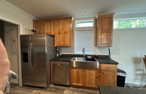Stay comfortably in Coos Bay at this 3-bedroom house with water views. With 2 queen beds and 1 bunk bed, this superb property offers a fantastic stay for guests. Enjoy amenities like WiFi, TV’s in 2 bedrooms as well as the living room, heating, fully equipped kitchen, and washer/dryer. The 2 bathrooms come equipped with shower/bath, hair dryer, and basic toiletries for added convenience. We're happy to assist with any questions while you stay at our house.