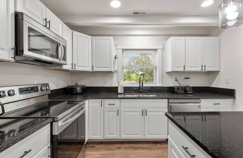 Este alojamiento de 3 dormitorios y 3 baños cuenta con una sala de estar, una zona para barbacoas y aire acondicionado. Disfruta del wifi y de la televisión. Prepara una comida casera en la cocina, equipada con horno, placa de cocina y frigorífico, además de cafetera y tetera, microondas y utensilios de cocina. Y no tendrás que llevarte ropa de más, porque podrás aprovechar la lavadora y la secadora. Otras comodidades incluyen ropa de cama, una tabla de planchar, calefacción y una mesa de comedor.