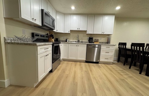 ¡Disfruta tanto del centro como del esquí con esta conveniente ubicación! A 15 minutos del aeropuerto, Midvale, UT se encuentra en la convergencia de las carreteras interestatales 15 y 215. Esas mismas carreteras interestatales lo llevarán rápidamente a las estaciones de esquí y Salt Lake City. Esta ubicación central hace que viajar sea fácil. Mi casa es un excelente lugar para alojarse durante todo el año. En el verano, la piscina está abierta y disfrutamos sentados bajo la glorieta comiendo barbacoa mientras los niños saltan en la piscina. Durante los meses de invierno, las pistas son cortas y convenientes. Visitar el centro es muy conveniente y divertido de hacer durante todo el año. Además, hay restaurantes, una sala de cine, estadios deportivos, bolos y bares a pocos minutos en coche. Los bolos y "un bar llamado Sue" que cuenta con billar, dardos y juegos de tejo están a 2 cuadras de distancia. Este apartamento familiar de concepto abierto tiene 3 habitaciones con un total de 6 camas (una habitación tiene dos juegos de literas para los niños), una cocina y una gran sala con una mesa de futbolín. La cocina está equipada con utensilios de cocina, utensilios, juegos de comedor, un keurig, tazas de café y copas de vino. También tiene un baño completo con toallas, champú y jabón. Además, los huéspedes tienen acceso a wifi. Nuestros huéspedes han dejado comentarios que elogian la ubicación de los apartamentos porque es muy conveniente llegar a Snowbird, Alta, Brighton y Solitude: a 25 minutos en automóvil. También es fácil quedarse aquí para llegar al centro. Tenemos una estación de tren ligero a 1 milla de distancia. La estación de tren ligero es transitable, o fácil de estacionar y viajar en el centro. Nuestros huéspedes anteriores se han quedado para las numerosas conferencias que celebra Salt Lake City. Nuestros huéspedes también adoran el ambiente familiar. Los niños se divierten jugando al futbolín o nadando en la piscina. El concepto de espacio abierto hace que sea realmente fácil observar a los niños mientras los adultos se relajan. Además de eso, respondo muy rápido y me esfuerzo por ganar una crítica de cinco estrellas en cada visita.