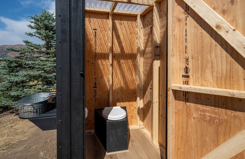 We are committed to sustainability, we provide eco-friendly amenities like private composting toilets, biodegradable toiletries, and solar-powered charging stations. We believe that small changes can make a big difference, and we're doing our part to protect the environment. With that said, you should also note, that each tent has its own private outhouse & outdoor shower. We believe in sharing, but not toilets. Each outhouse is equipped with a compost toilet, sink and mirror.