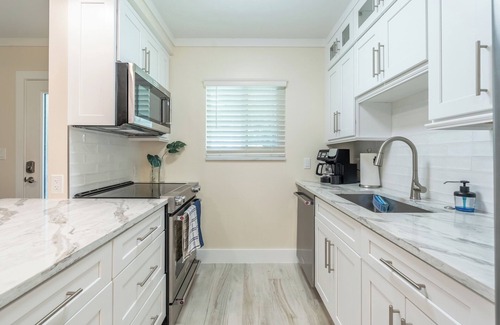 Esta casa de vacaciones de 2 dormitorios y 2 baños está ubicado en Naples, una ubicación ideal para explorar los alrededores. A los amantes de la naturaleza y el aire libre les encantará estar a 6min a pie de Playa de Naples y a 3min de Parque Lowdermilk Beach. Estarás a 3min en coche de Quinta Avenida Sur de Naples y a 3min también en coche de Naples Zoo at Caribbean Gardens.
