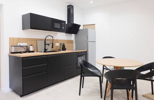 Prepara una comida casera en la cocina básica, equipada con horno, placa de cocina y frigorífico, además de cafetera y tetera, hervidor eléctrico y microondas. Conéctate al wifi, o relájate frente a un Smart TV. Otras comodidades de este alojamiento de 1 dormitorio y 1 baño incluyen una sala de estar y calefacción.
