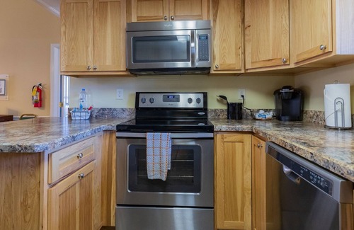 Este alojamiento de 4 dormitorios y 4 baños cuenta con una sala de estar, una zona para barbacoas, chimenea y aire acondicionado. El cuarto de baño incluye un secador de pelo, toallas y papel higiénico. La cocina está equipada con horno, placa de cocina y frigorífico, además de cafetera y tetera, máquina de hielo y microondas. Y como hay una lavandería de monedas en los alrededores, no necesitarás llevarte mucho equipaje.