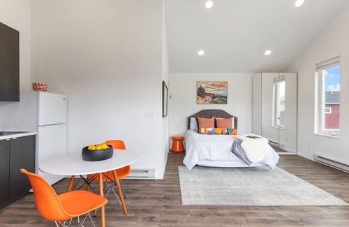 Cuando dispones de horno, placa de cocina y frigorífico, además de cafetera y tetera, microondas y utensilios de cocina, no hace falta ir de restaurante cada noche. Y como podrás aprovechar la lavadora y la secadora, no te hará falta llevar mucho equipaje. Otras comodidades de este alojamiento de 1 dormitorio y 1 baño incluyen ropa de cama, aire acondicionado, calefacción y una mesa de comedor.