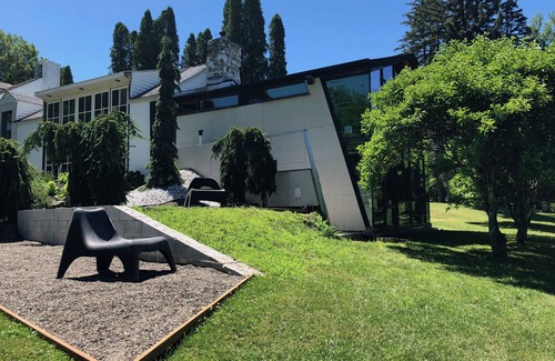 Esta es una casa de arquitecto / artista recientemente renovada presentada en Icon Design Magazine Italy. El entorno con una cascada privada que bordea las reservas públicas, así como la atención a los detalles arquitectónicos es única. Recorre el bosque hasta la ciudad de Woodstock a través del arroyo. Comedor al aire libre con parrilla de carbón, múltiples salas de estar al aire libre. Proporcionamos sábanas de algodón blanco y toallas lavadas con detergente sensible. Ciertos detalles exteriores no están completamente terminados. Plano de planta abierto. IG marsh__meadows