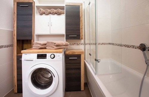 La cocina está equipada con horno, placa de cocina y frigorífico, además de cafetera y tetera, microondas y utensilios de cocina. Conéctate al wifi gratis, o relájate frente a televisión. El cuarto de baño incluye un secador de pelo y toallas. No necesitarás llevarte mucho equipaje, porque hay acceso a una lavandería. Otras comodidades de este alojamiento de 2 dormitorios y 1 baño incluyen una sala de estar, ropa de cama, calefacción y una mesa de comedor.