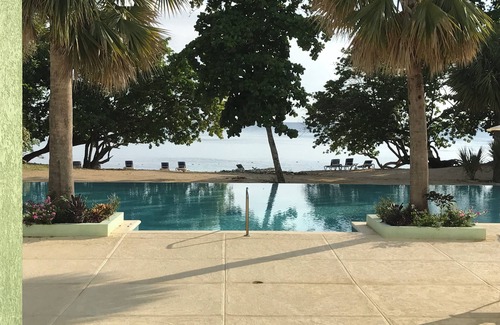 Comience sus vacaciones cuando nuestro conductor privado de JUTA lo recoja en el aeropuerto y lo lleve con estilo a este condominio de retiro perfecto. Esta lujosa propiedad ofrece relajación y comodidad con acceso a Little Bay (una bahía privada aislada) y una piscina infinita, todo a un corto paseo por esta comunidad bellamente ajardinada que está cerrada y segura. Esta unidad ofrece un colchón extra grueso de tamaño queen en la cama con almacenamiento incorporado y vista al jardín. Cocina moderna de estilo gourmet con electrodomésticos de acero inoxidable, barra invertida, encimeras de granito y utensilios de cocina. Una gran ducha de azulejos con cabezal de ducha tipo lluvia y una bañera que se encuentra debajo de una gran ventana con vistas al jardín. WIFI, TV de pantalla plana, cable (deportes y canales premium) sillón de descanso de ante suave con altavoces Bluetooth incorporados y equipo para deportes acuáticos. Ama de casa, chef y conductor privado de JUTA / director de turismo disponible (kayak inflable, equipo de snorkel, flotadores de piscina). una cama plegable disponible bajo petición. (30. 00 tarifa). Mini Mart está en el sitio al lado de Infinity Poo. l