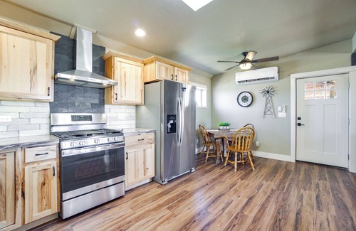 Trade city noise for wide-open spaces — this 1-bed, 1-bath vacation rental in Nunn, CO, invites you to feed ranch animals, savor stunning views of the Front Range from the porch, and enjoy al fresco meals. Want to venture out? Explore the Pawnee National Grassland and take a day trip to Fort Collins or Cheyenne. After active days, return to this cozy guest house for fireside relaxation. A tranquil escape awaits!