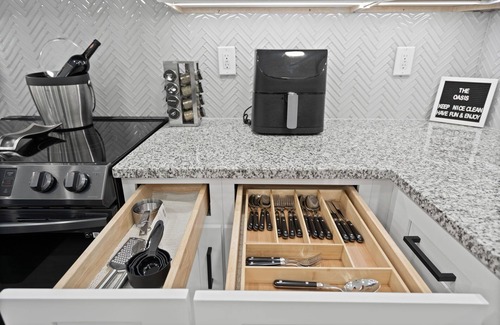 Este alojamiento de 3 dormitorios y 2.5 baños cuenta con una sala de estar, aire acondicionado, escritorio y dispensador de agua. El cuarto de baño incluye un secador de pelo, toallas y papel higiénico. La cocina está equipada con horno, placa de cocina y frigorífico, además de cafetera y tetera, hervidor eléctrico y máquina de hielo. Podrás viajar con poco equipaje, porque tendrás una lavadora y una secadora a tu disposición.