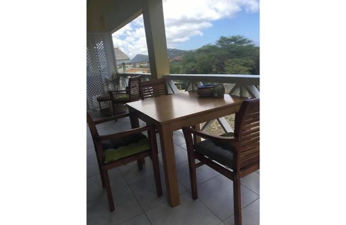 The Apartment is a family friendly apartment on the first floor. Here you will find an open kitchen, which has all the appliances for your comfort: dishwasher, washing machine, microwave/oven and a refrigerator. On this floor there is also the living room, a bathroom and a balcony overlooking the tropical garden. the appartment has 2 bedrooms with airco.