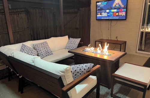 Este alojamiento de 3 dormitorios y 2 baños cuenta con una zona para barbacoas, aire acondicionado, escritorio y impresoras. El cuarto de baño incluye un secador de pelo, toallas y papel higiénico. La cocina está equipada con horno, placa de cocina y frigorífico, además de cafetera y tetera, hervidor eléctrico y máquina de hielo. Y no tendrás que llevarte ropa de más, porque podrás aprovechar la lavadora y la secadora.