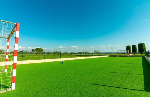 Sumérgete en la tranquilidad de una piscina de sal de 8 x 2 metros, con una profundidad máxima de 2 metros, ideal para refrescarte en los cálidos días de verano. Para los más pequeños, hay una piscina infantil con una profundidad que varía entre 0.1 y 0.6 metros y dimensiones de 3 x 4 metros, garantizando diversión y seguridad. Los niños también podrán disfrutar de un parque infantil equipado con columpios y toboganes, mientras que los amantes del deporte encontrarán un campo de fútbol perfecto para actividades al aire libre. Las grandes terrazas y el porche amueblado invitan a relajarse y disfrutar de las vistas panorámicas a la montaña. La zona de barbacoa es ideal para comidas al aire libre, con 20 hamacas y 5 sombrillas disponibles para que todos los huéspedes puedan disfrutar del sol en total comodidad.