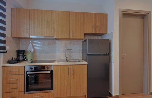 The apartment features a well-equipped kitchen, perfect for preparing delicious meals, a comfortable queen-size bed, and a sofa bed, ensuring ample space and comfort for all guests. The private balcony provides captivating views of the majestic Mount Olympus, offering a serene spot to relax and enjoy the picturesque landscape. With everything in the apartment brand new, you can enjoy a luxurious and comfortable stay. Essential amenities include free closed parking, complimentary Wi-Fi, and air-conditioning for your convenience.