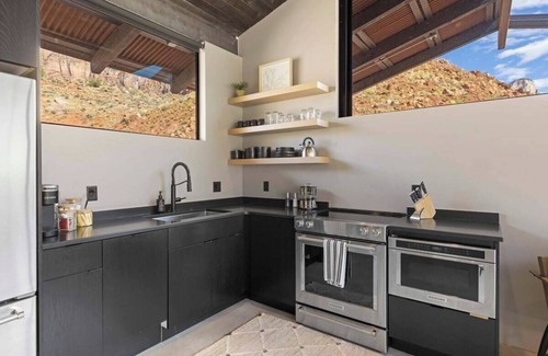 Zion loft | Canyon Views | Unit 1 Se encuentra en Zion National Park South Entrance. Zion loft | Canyon Views | Unit 1 ofrece alojamiento, con Estacionamiento, Seguridad, Cocina, Entre otras comodidades. Estas características Apartamento Estacionamiento, Seguridad, Cocina, Para que su estadía sea cómoda.