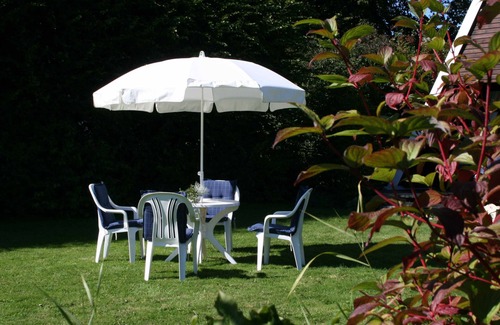 La casa tiene un amplio césped con arbustos y árboles, que crecen en los caminos públicos. No hay tráfico de vehículos y hay un aparcamiento privado. La terraza parcialmente cubierta está orientada al sur, equipada con muebles de jardín, tumbonas y sombrillas. En su casa de vacaciones vive en dos niveles. A nivel del suelo en la sala de estar y dormitorio combinados, que incluyen hall, baño y cocina. Lavadora y lavavajillas están incluidos. Una escalera de caracol conduce a las dos habitaciones separadas y los armarios empotrados. La casa de techo puntiagudo está amueblada para un máximo de 6 personas, muy bien cuidada y decorada con buen gusto. Puede esperar un baño completamente renovado con equipamiento de alta calidad. Cuna y juegos de mesa están disponibles.